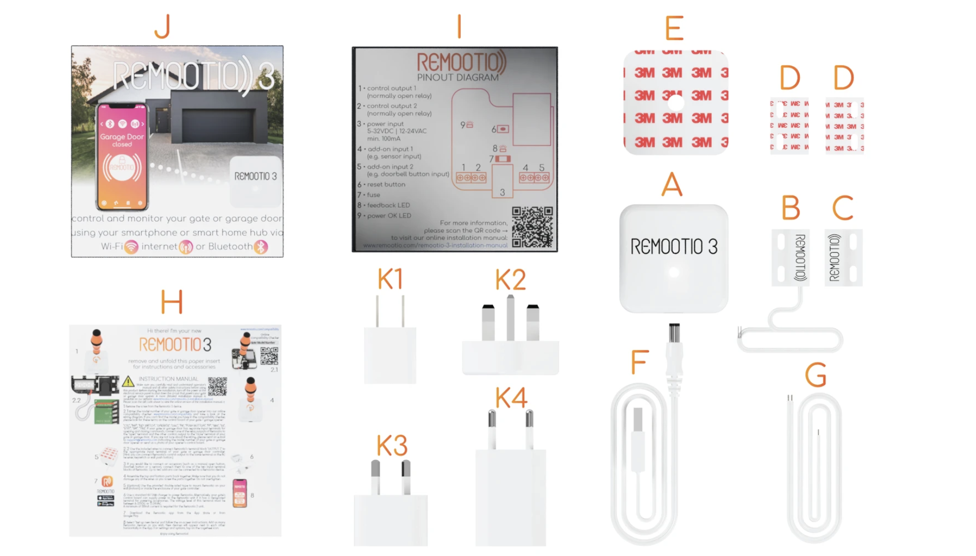 E - 1 x Double-sided adhesives for mounting the Remootio unit